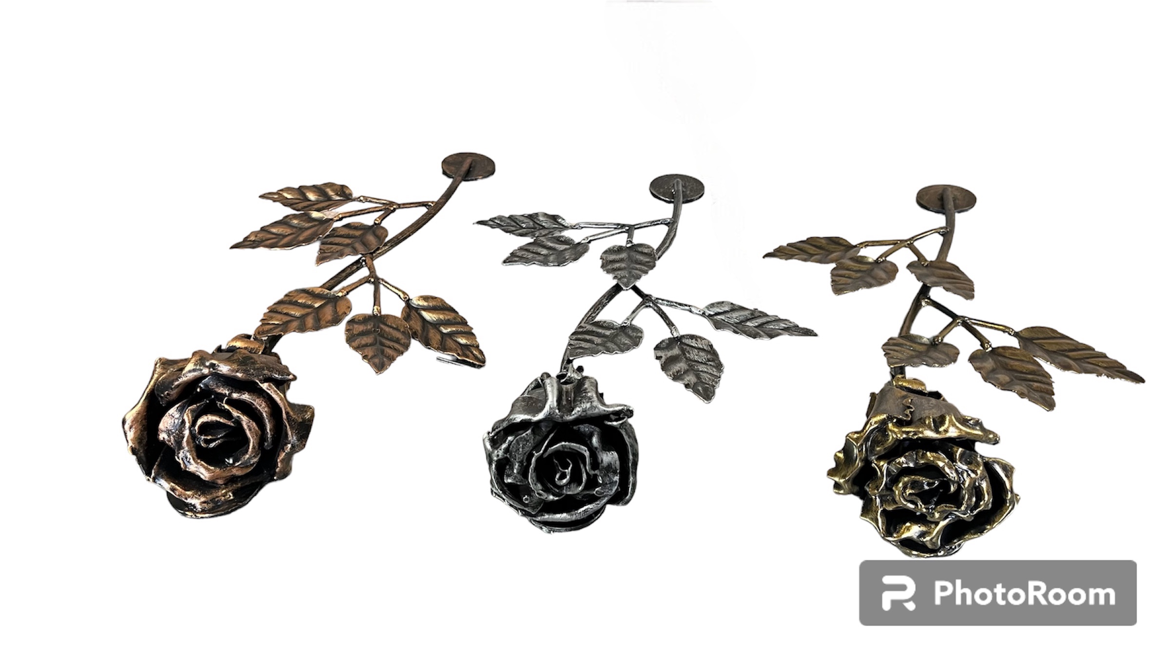 Кованые розы выполнены в ручную, методом художественной ковки. Этим цветам не страшны ни дождь, ни ветер, ни морозы, они не выцветут под палящим солнцем. Возможен вариант с креплением к надгробной плите.