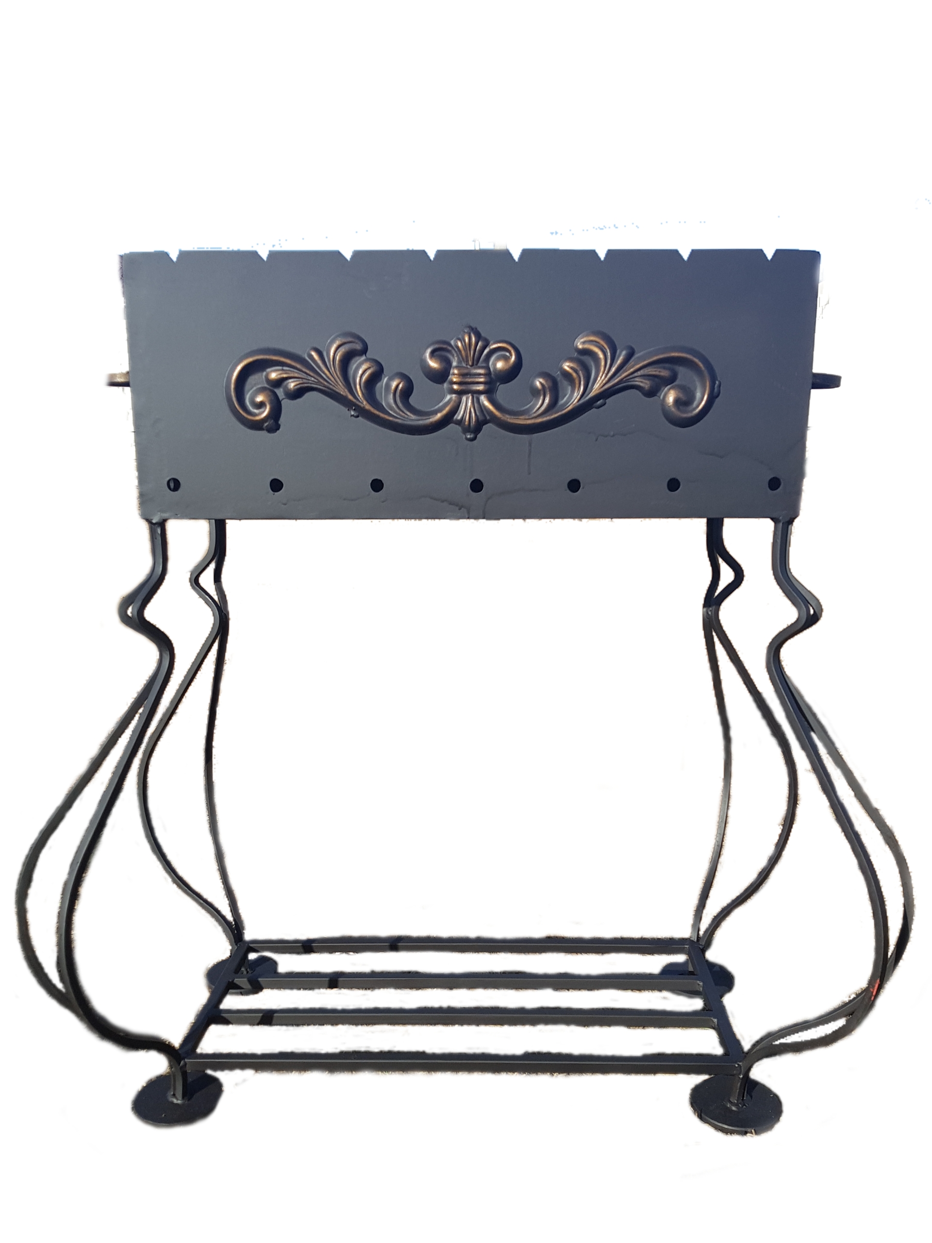 Мангал покрашен термостойкой краской CERTA до 1200 градусов дополнительно мангал можно укомплектовать решеткой для гриля, подставкой под казан, регулируемым по высоте подвесом под котелок, совком, кочергой, крышкой (по усмотрению заказчика)